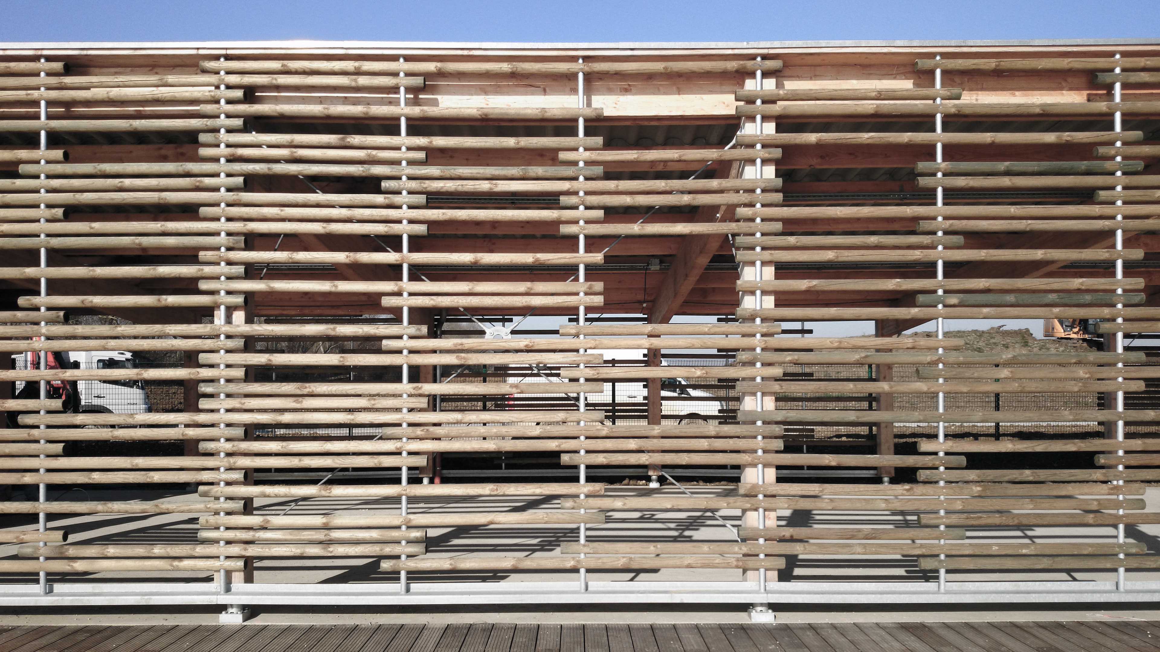 Disposé en patte d’oie avec le club nautique et le pavillon d’accueil de la baignade voisine, il façonne la centralité de la base de loisirs de Montagny-lès-Beaune.