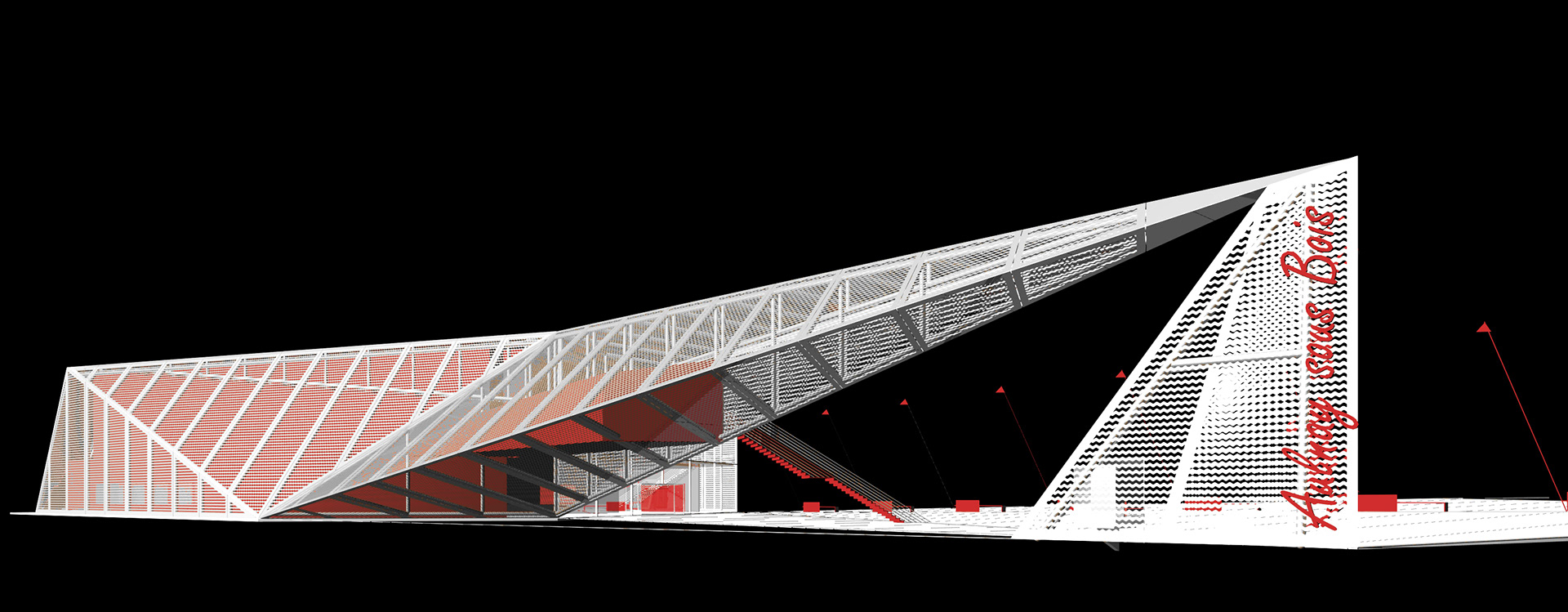 - Une enveloppe poreuse, laisse deviner le cœur du projet: La salle de spectacle.